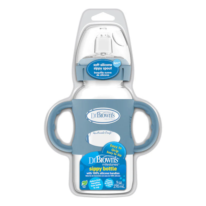 Dr Brown's Milestones 270 ml Wide-Neck Sippy Bottle with Silicone Handles Blue